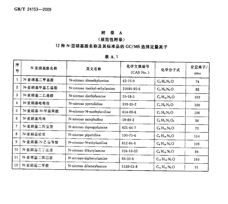 GBT 24153-2009 和 EN 12868-1999 橡膠及彈性體材料 N-亞硝基胺的測定